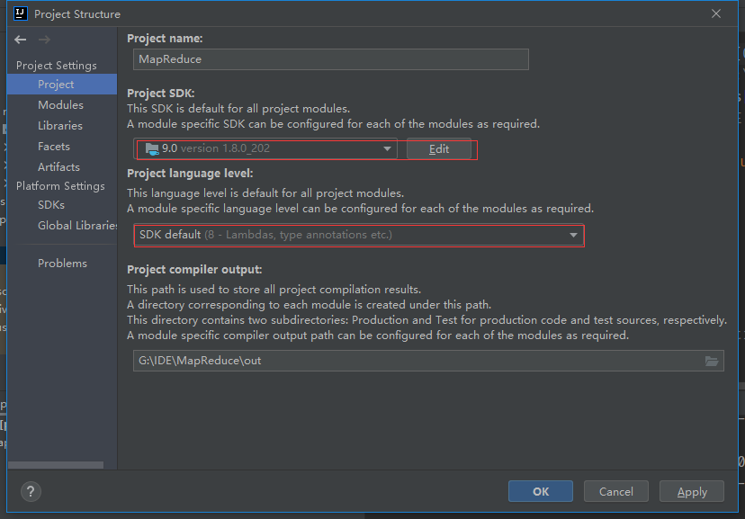 对下述两个框框进行修改。因为可以看到我的version是1.9.0_202 (因为忘记改名了所以包名为9.0)之后将下面的SDK default修改为 8