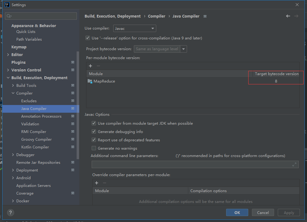 在File-Settings-java Complier中,将红框内的设置为8即JDK8