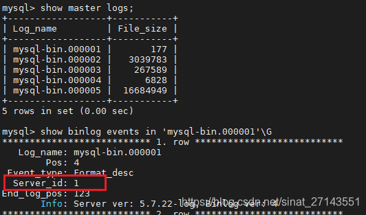 mysql> show binlog events in 'mysql-bin.000002';#查看指定binlog文件的内容