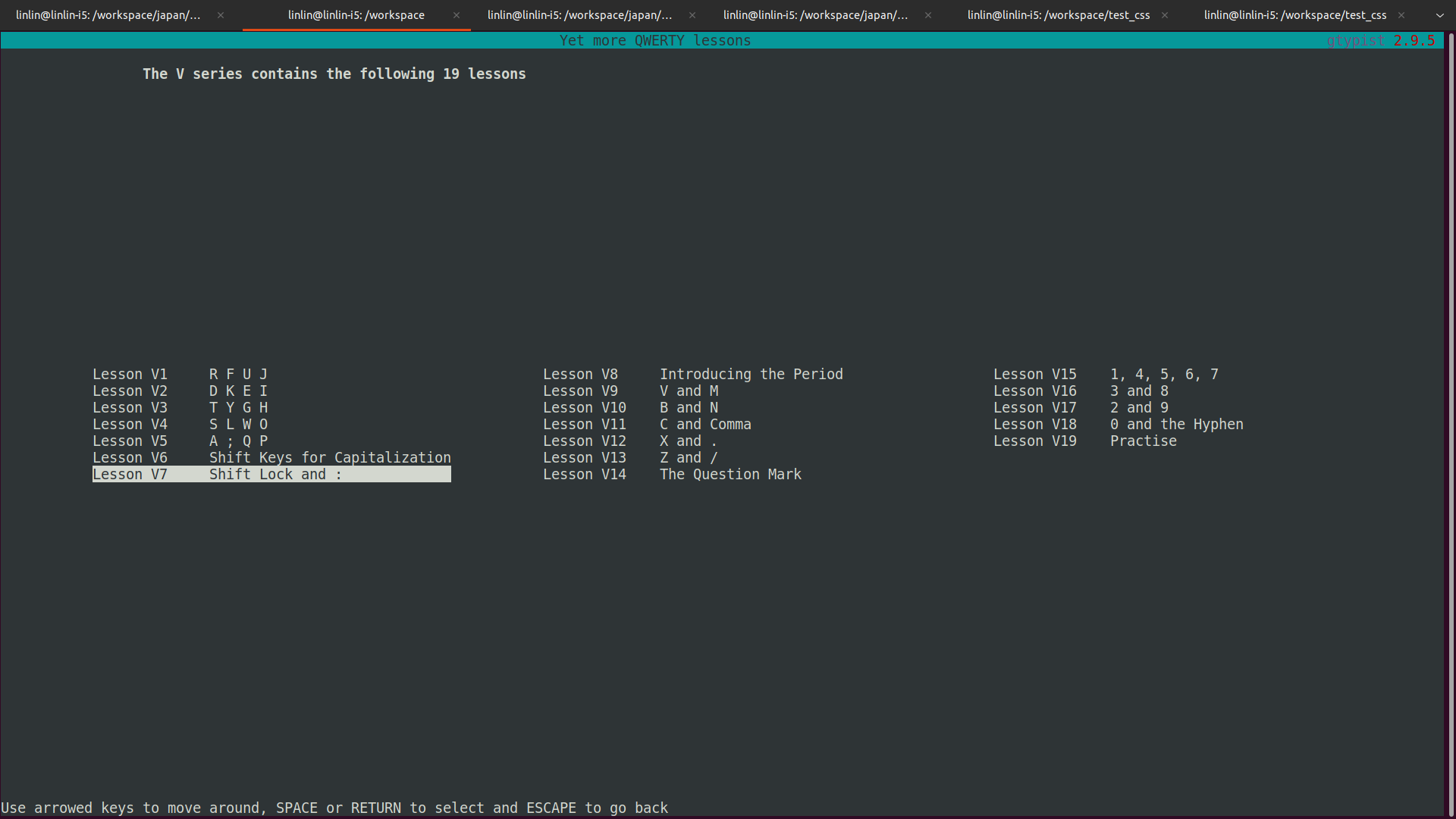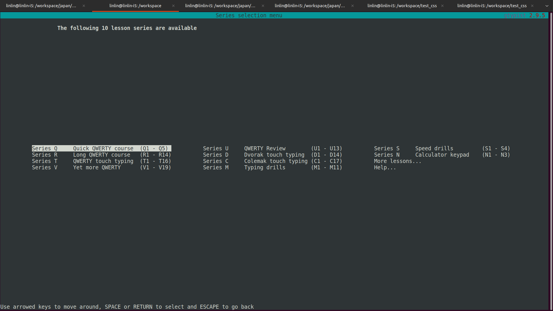 同理,输入 gtypist 可以运行,练习打字.