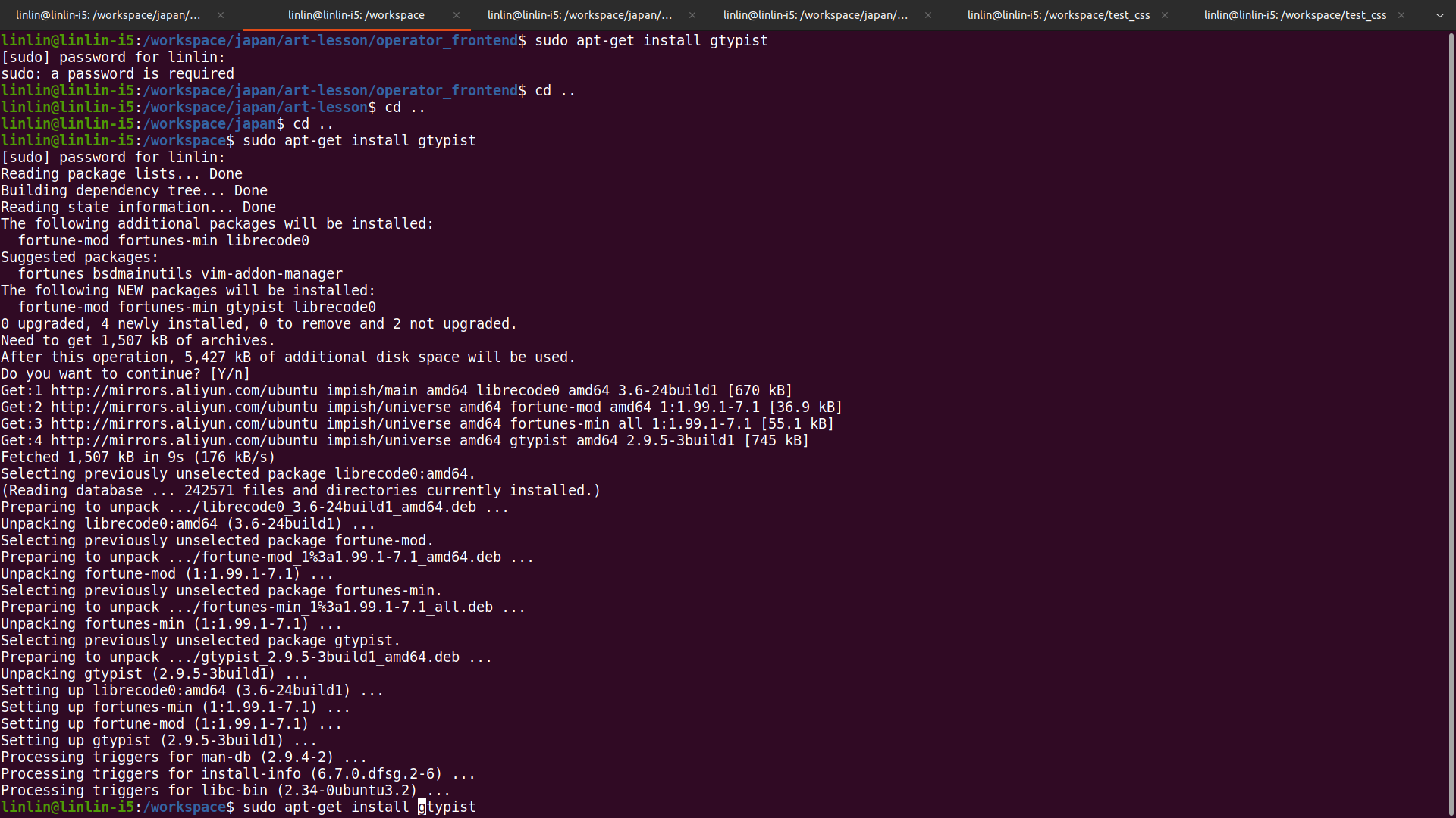 在命令行直接输入命令: sudo apt-get install gtypist