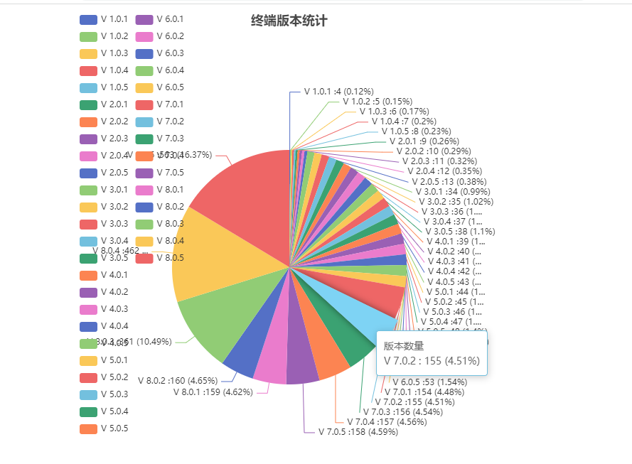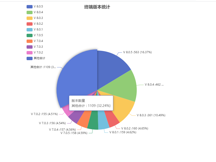 setPieChart("main", "终端版本统计", "版本数量", data);可根据需要调整需要单独显示的数据条数。