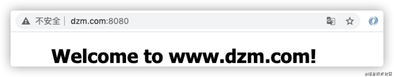 nginx.conf:# 新增一个 server server { listen 8080; server_name www.dzm.com; location / { root /usr/local/var/dzm; index index.html; } }