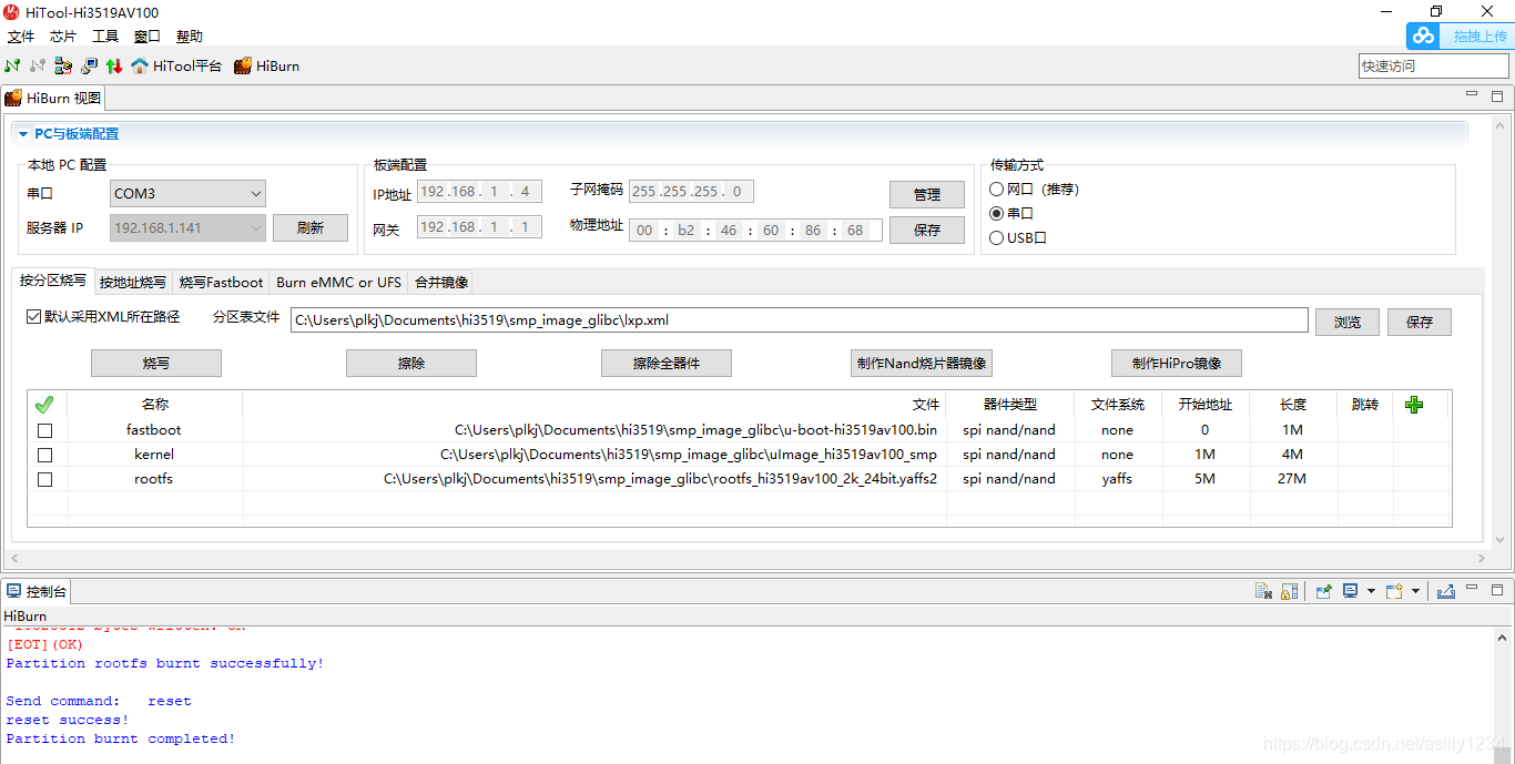 2)在windows电脑上运行Hitool.exe ,再按照【HiBurn 工具使用指南.pdf】 按分区烧写的操作进行烧写