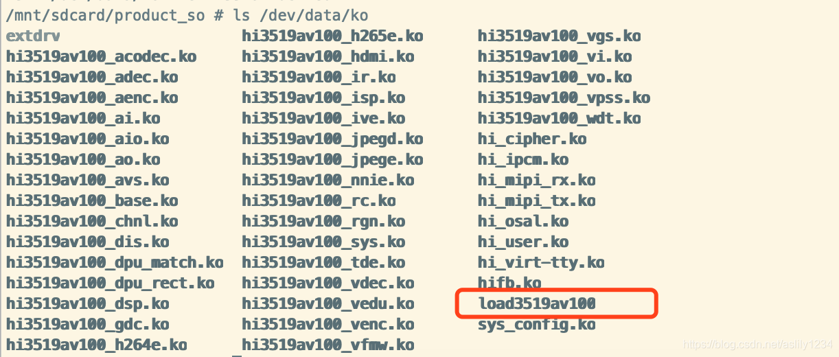 sdk 安装后,驱动程序在 【Hi3519AV100_SDK_V2.0.1.0/smp/a53_linux/mpp/ko】目录中,将其拷贝到开发板上