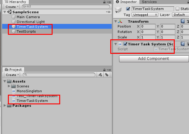 2、在工程中新建脚本,MonoSingleton 单列类,TimerTaskSystem 定时任务系统实现定时的核心代码逻辑,Test_TimerTaskSystem 测试 定时任务系统,如下图