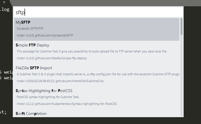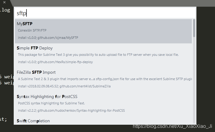 3.然后输入sftp,下拉列表中会出现一些相关的插件,选中sftp进行安装就行。