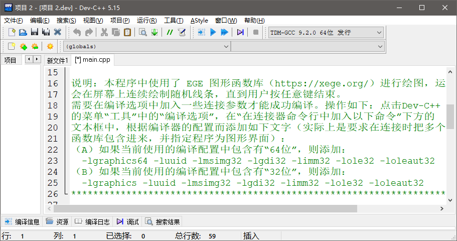 在使用Dev-C++后,在网上找到了一个EGE的图形库,感觉不错,就尝试着加入到Dev-C++的环境中。总体上比较顺利,也碰到了一些小的问题,整理后记录如下: