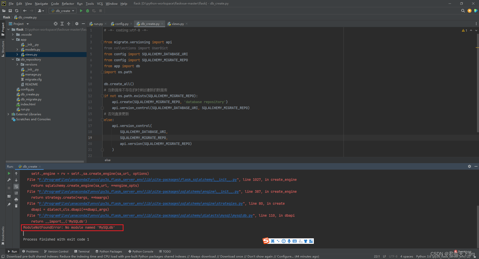 Flask项目从python2.x升级到python3.6,提示缺少“MySQLdb”模块。