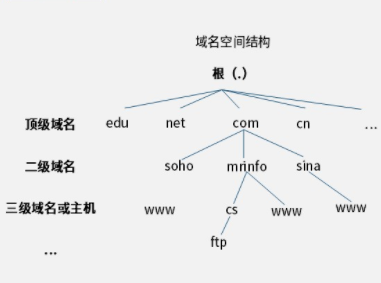 域名由“根(.)+顶级域名+二级域名+三级域名或主机+......”构成。