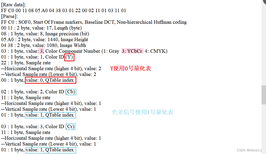 (5) SOF0一帧图像的开始,固定标识符0xFFC0