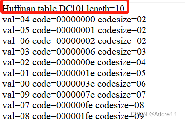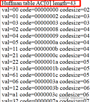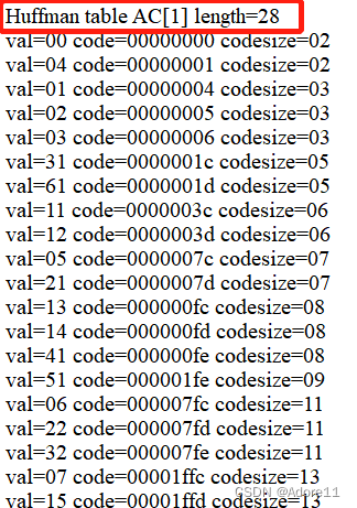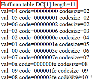 #endif在build_quantization_table函数中将Huffman表打印出来: