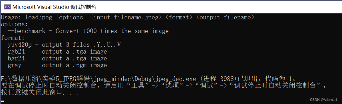 输入的jpg图像名称、jpeg图像格式、输出的文件名称(图像格式如下:yuv、rgb、bgr、gray)
