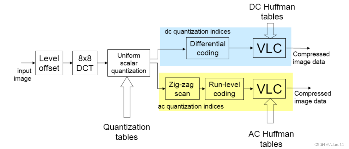 DC和AC系数分别进行Huffman编码,最终输出编码后的图像