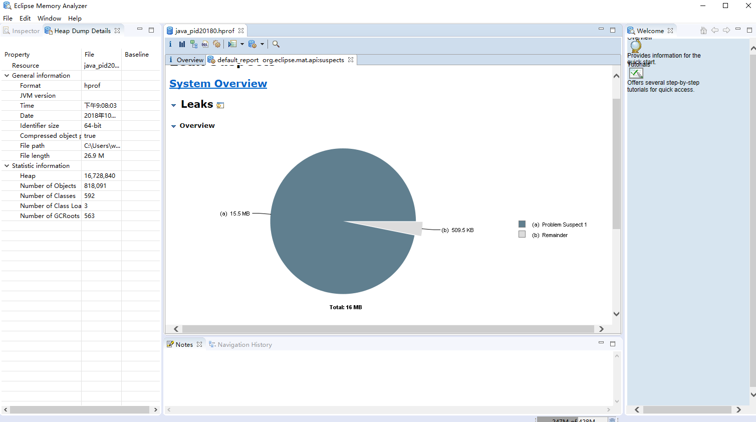我们用Memory Analyzer 打开 dump出来的堆转储快照