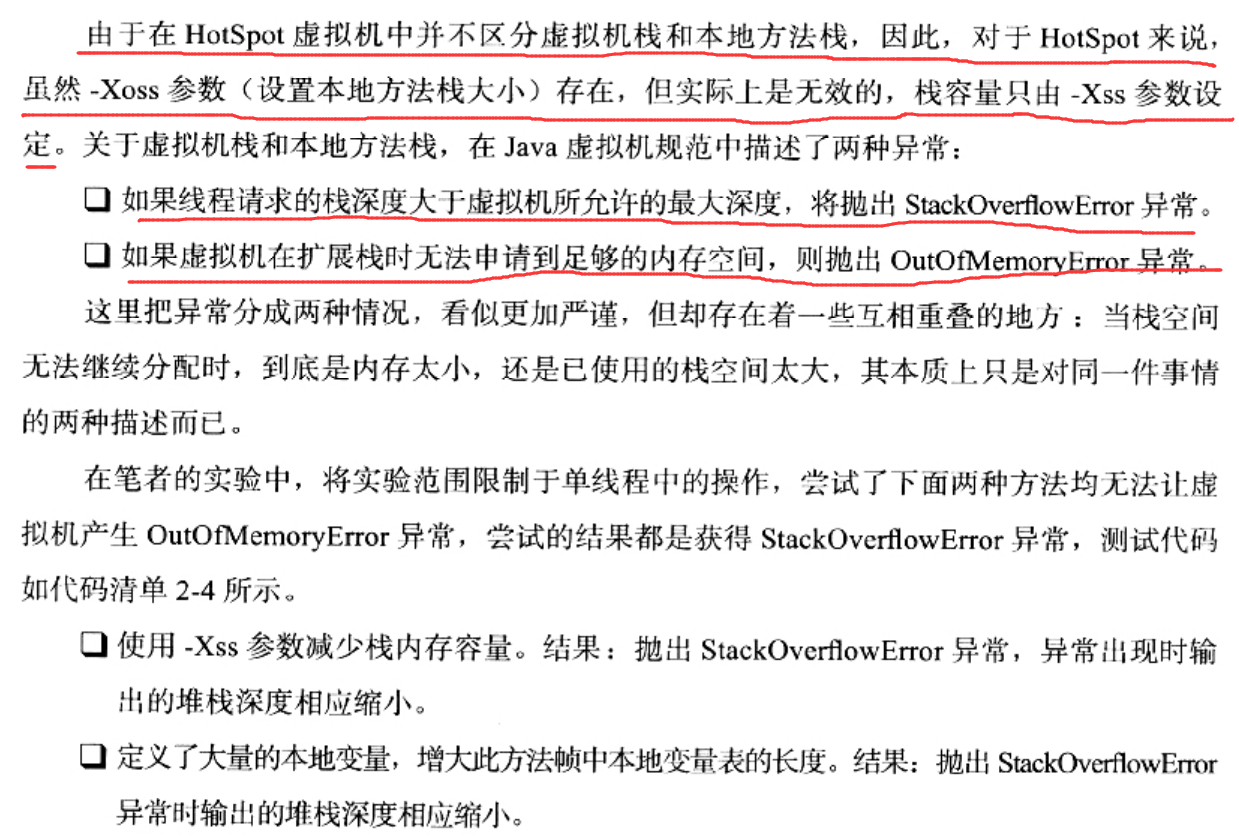 2、java虚拟机栈和本地方法栈溢出