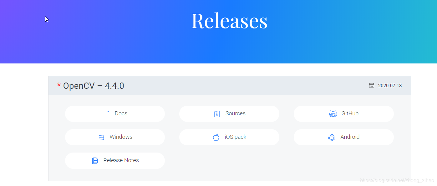 1. openCV官网( https://opencv.org/releases/ ) 下载 windows版openCV4安装包,我这里下载的是openCV4.4.0,安装到电脑 。