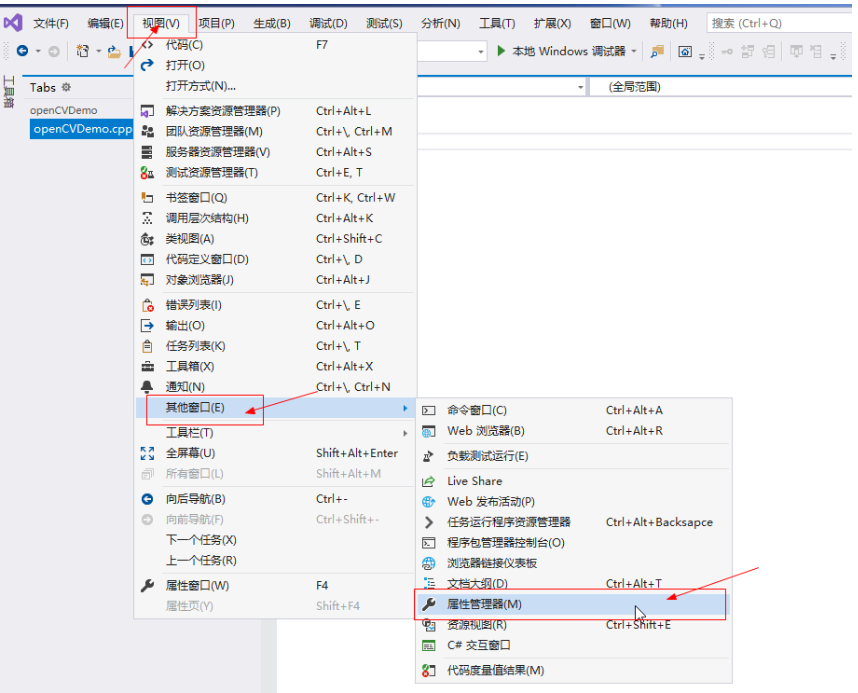 (1)创建一个新的控制台应用,创建完成后选择 视图--其他窗口--属性管理器