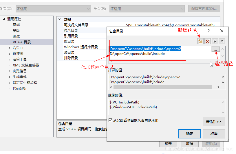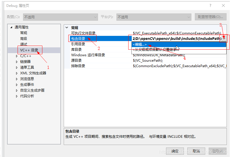 (3)选择VC++目录 -- 包含目录 -- 点击下拉箭头 -- 编辑