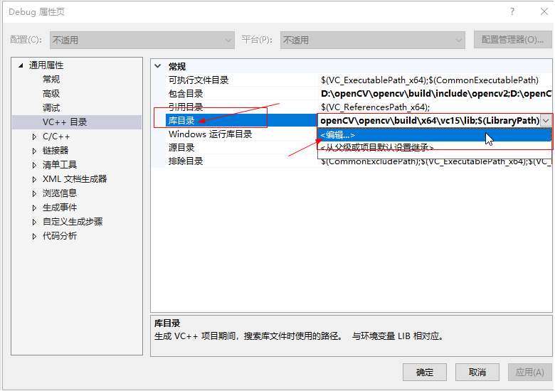添加此路径:openCV安装目录\opencv\build\x64\vc15\lib
