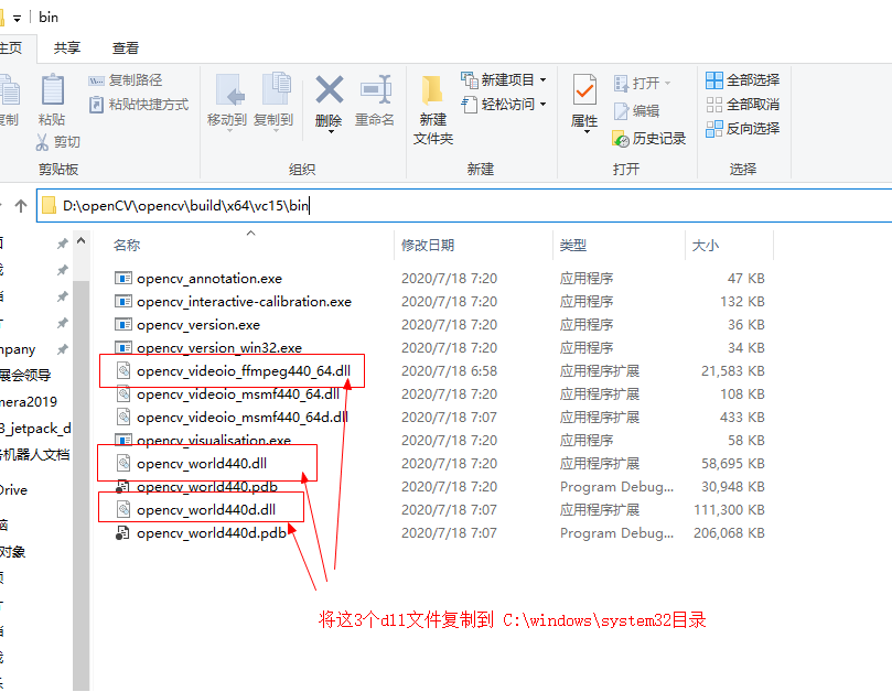 找到安装目录\opencv\build\x64\vc15\bin目录下,以下的dll文件复制到 C:\Windows\System32 系统目录
