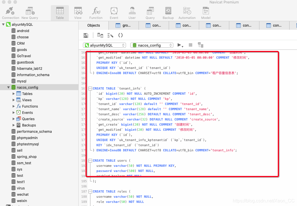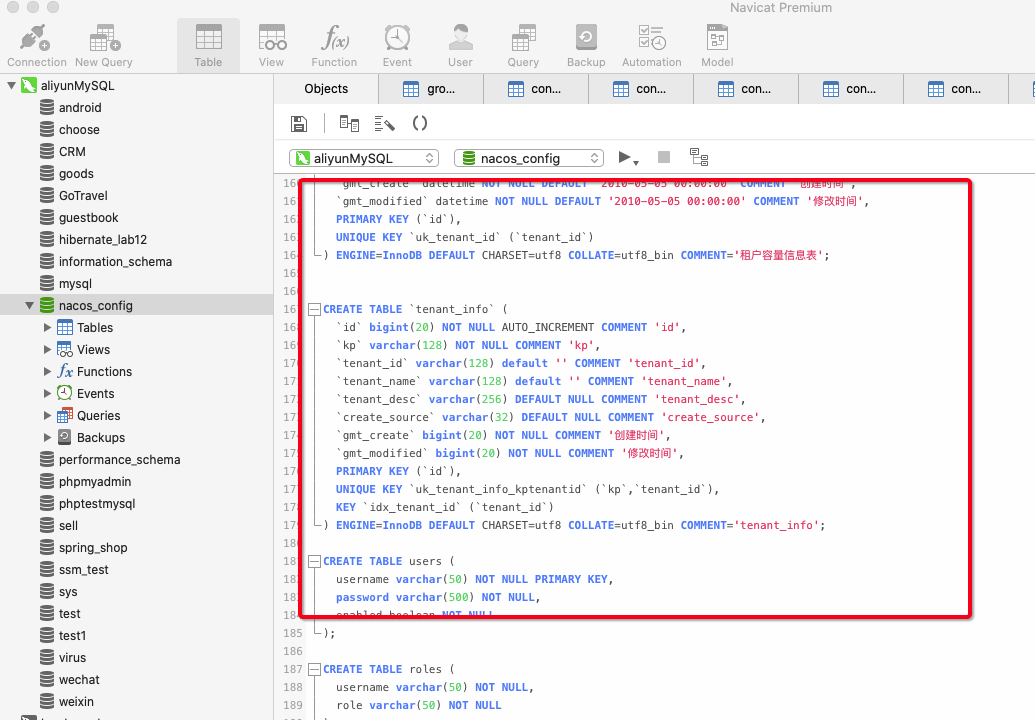 在conf的目录下,复制nacos-mysql.sql 这个文件里面的文本内容