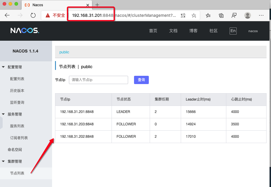 这时候,我们直接去访问http://192.168.31.201:1111/nacos 就可以了
