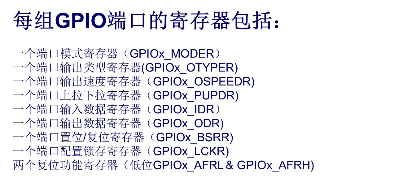 二、每组GPIO端口的寄存器包括: