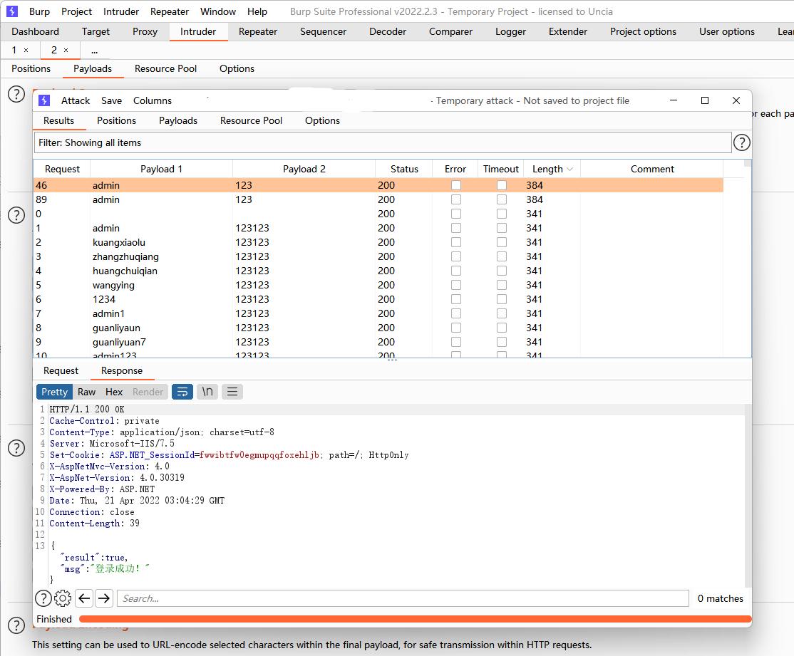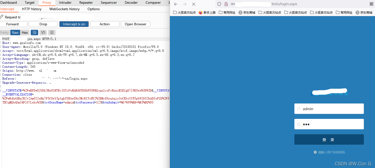 1、首先输入账号密码进行抓包(这里发现对方没有验证码,或验证可绕过的缺陷进行攻击)