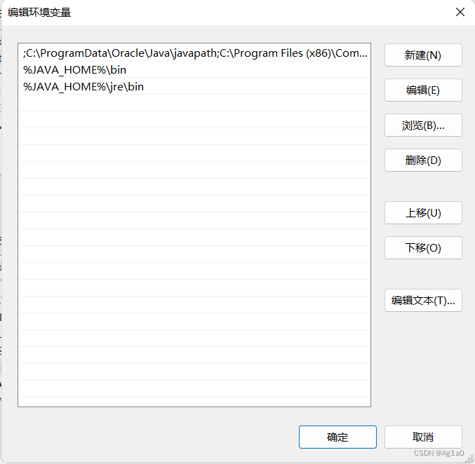 一个里面填写 %JAVA_HOME%\bin ,另一个里面填 %JAVA_HOME%\jre\bin