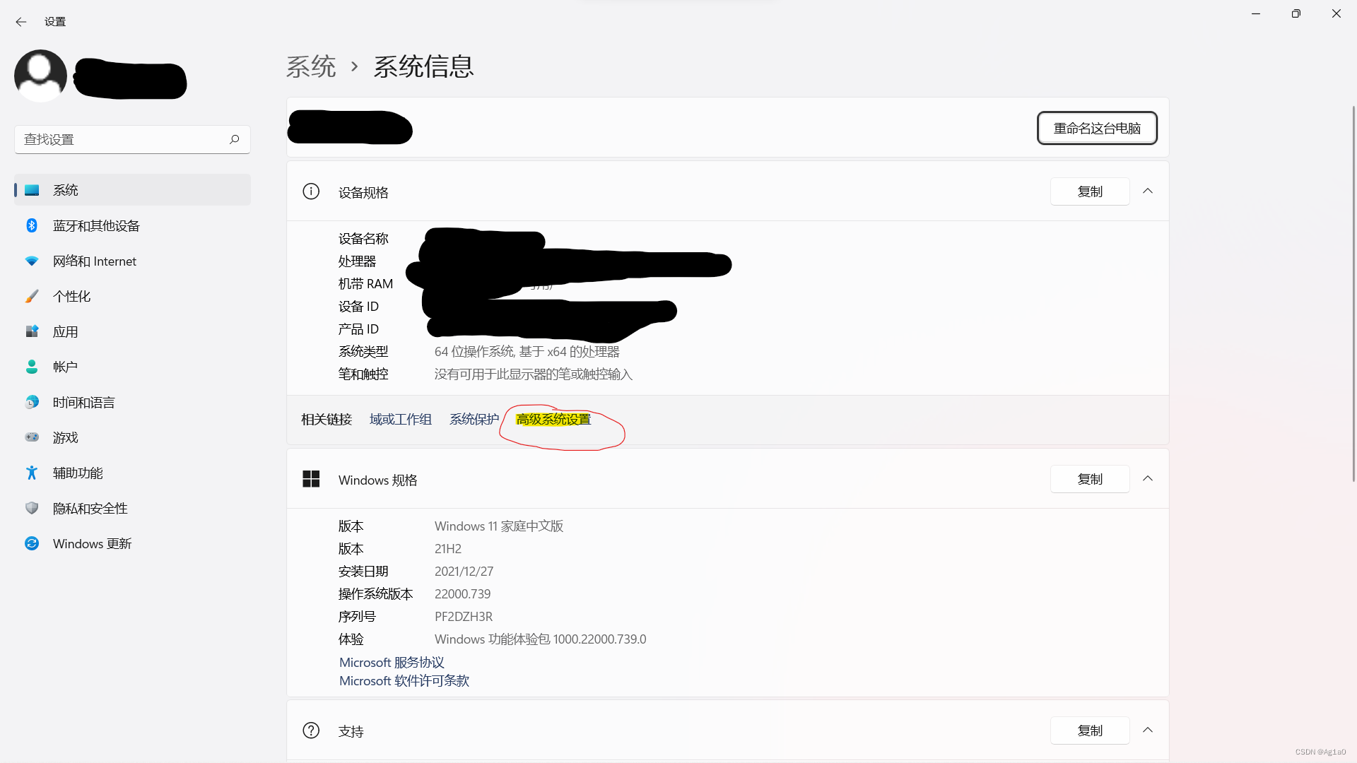 右键点击我的电脑,然后点击属性。在里面找到高级系统设置,如图: