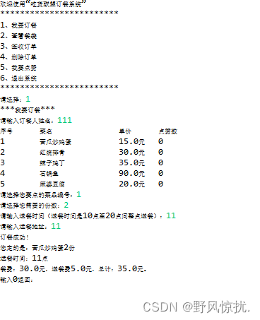 System.out.println("订餐成功!");