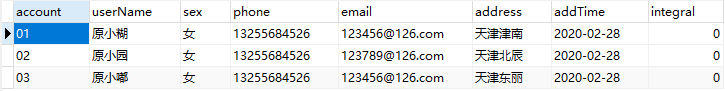 select account,userName,sex,phone,email,address,addTime,integral from t_integral