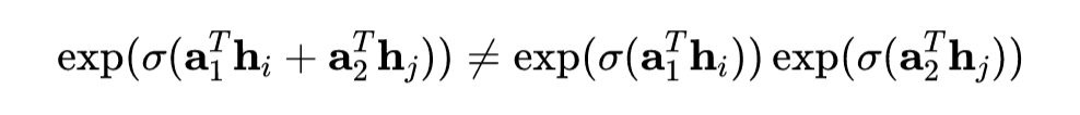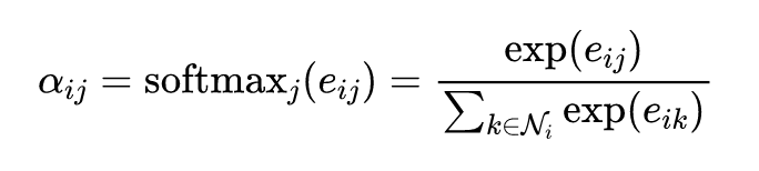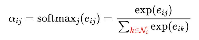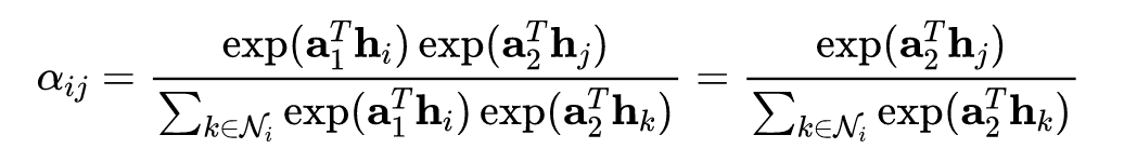 这里的归一化进一步导致了注意力权重的非对称性。因为在归一化的过程中,每个节点的归一化对象并不一样。是针对节点的所有邻居进行归一化,而是针对节点的所有邻居进行归一化。