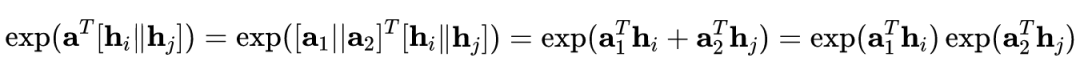 也就是说,分子分母同时约去了节点的信息,实际变成了。这时,节点对之间的注意力权重实际没有考虑节点的表示。