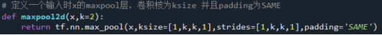 池化层定义:定义一个输入时x的maxpool层,卷积核为ksize 并且padding为SAME