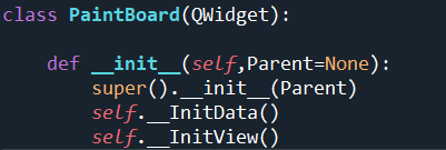 - 类初始化代码:新建PaintBoard类继承QWidget,之后执行两个函数,一个是数据的初始化函数,一个是视图的初始化函数