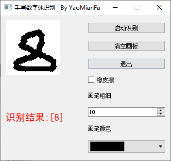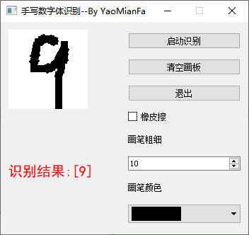 接着设置一个垂直子布局,包含绘画板和一个QLabel作为识别结果的提示。