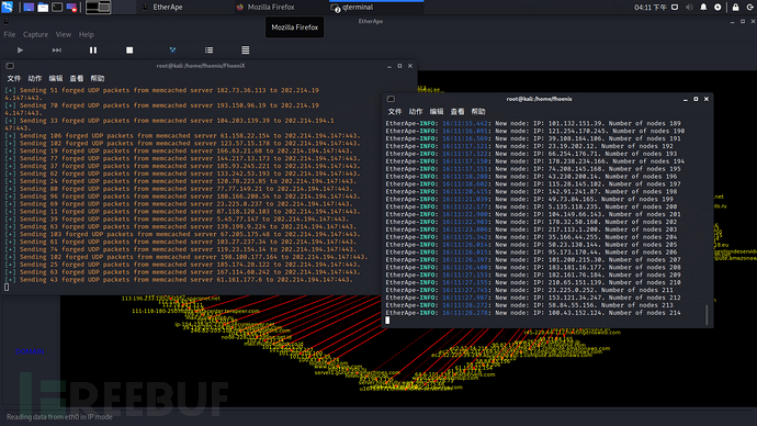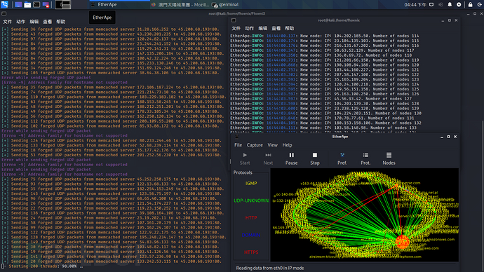 下面给各位展示一下我自己写的反射工具——fhoenix(这里我用了etherape进行流量监控,酷么XD)