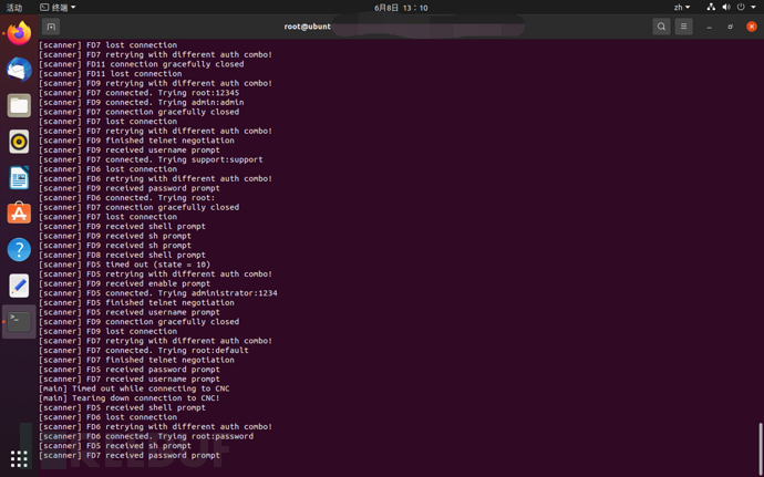 (mirai/bot/scanner.c674行起),修改代码后暂时可以固定一位ip地址扫描。修改后固定第一位为‘10’,结果如下: