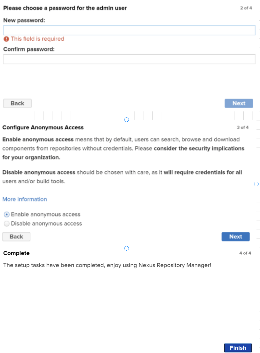 第一次登录,需要修改密码,设置一些选项,修改密码、是否开启匿名认证、完成;具体如图所示: