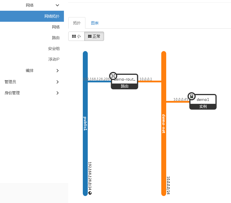 创建完成后可以到项目-->网络-->网络拓扑中查看。
