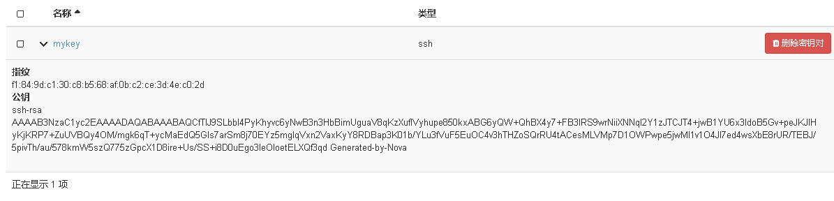 密钥可以点击密钥旁的小箭头查看,或点击密钥名称查看
