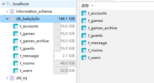 4、数据库搭建完毕,会在数据库中看到如下结构