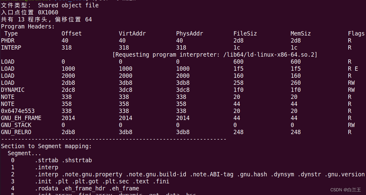 -l :--program-headers ;--segments 显示程序头(段头)信息(如果有的话)。