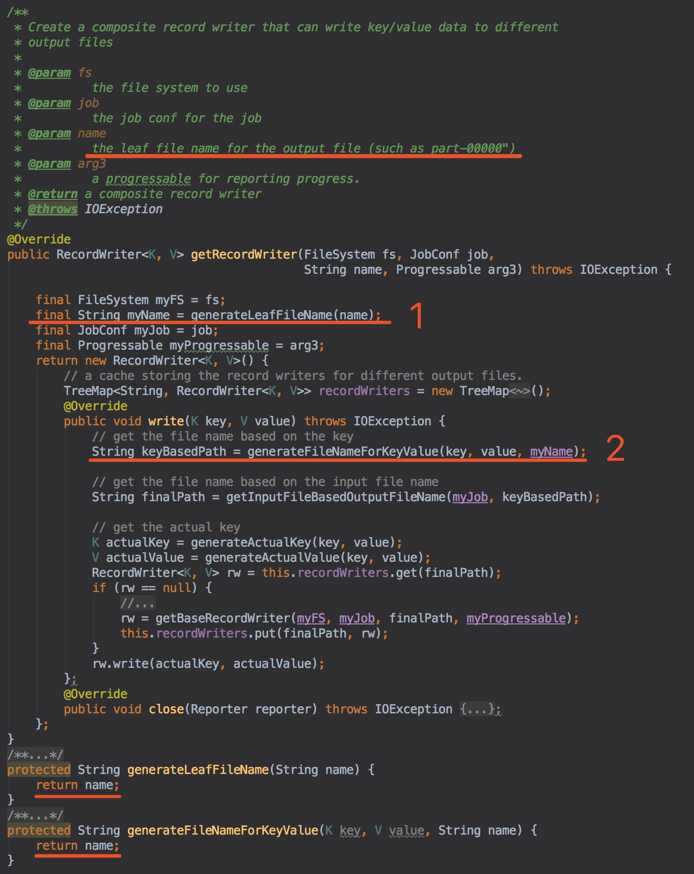 此需求跟上述问题解决方案一摸一样,也是重写自己的RDDMultipleTextOutputFormat即可。代码示例如下: