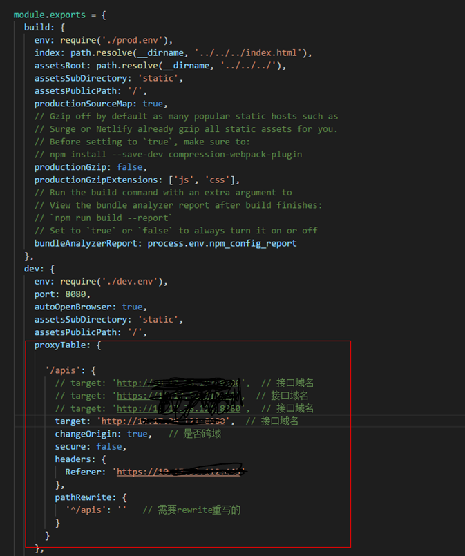 pathRewrite为重写配置,因为在 ajax 的 url 中加了前缀 '/apis',而原本的接口是没有这个前缀的,所以需要通过 pathRewrite 来重写地址,将前缀 '/apis' 转为 '';