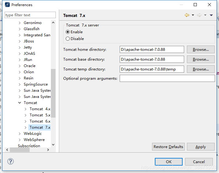 打开Myeclipse windows-->preferences-->Myeclipse-->Servers-->Tomcat