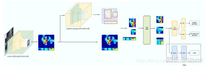 我们再进一步,将ResNet-FPN+Fast RCNN+mask,则得到了最终的Mask RCNN,如下图: