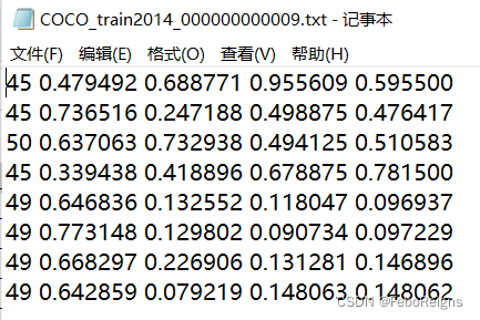 在COCO中 一个图片对应一个同名的txt,其中,第一个值是类别,COCO中是0 -79 80个类别